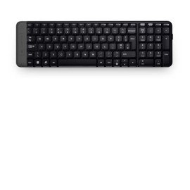 Logitech Wireless Keyboard K230. The compact keyboard that brings fun to the basics. It's about 36% smaller than our standard keyboards but still has all the standard keys. You get a reliable wireless connection up to 10 metres (33 feet) away, with virtually no delays or dropouts—even in the busiest wireless environments—all in a tiny, plug-and-for..